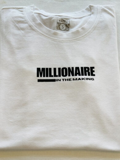 Book, signature black and gold t-shirt and designer tote bag